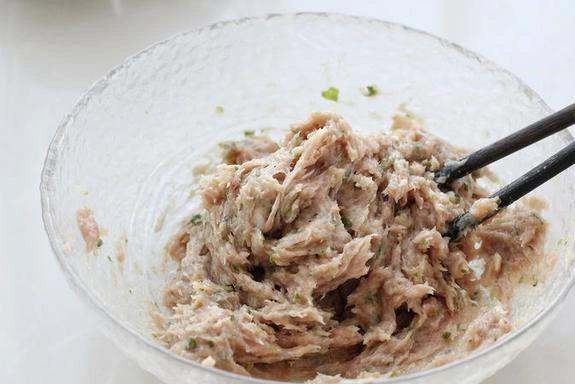 接下来,弄肉馅。把不连虾尾的虾肉和猪肉扔进绞肉机,香葱和姜洗净也丢进去,沿途打成紧密的肉馅。肉馅倒进碗里,加入料酒、香油、盐、白胡椒粉和玉米淀粉。拿筷子顺着一个标的用力搅,搅到肉馅有韧劲规定。这一步很要道,搅上劲的肉馅口感更弹,蒸出来不会散。
