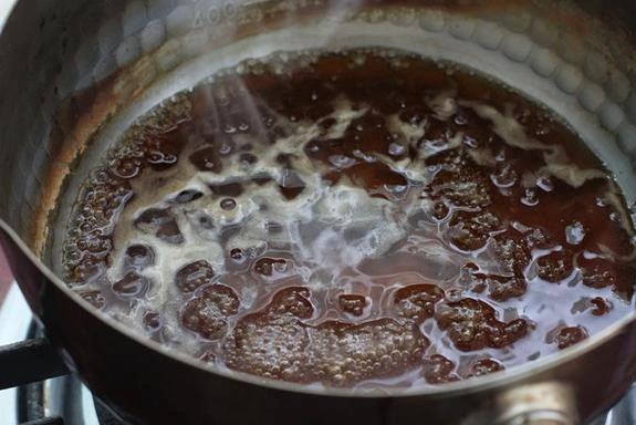 蒸好后,盘子里会有些汤汁,别滥用。把汤汁倒进锅里,大火烧开,加入蚝油和生抽,煮沸后倒入水淀粉,边倒边搅,汁液变浓稠就行。这酱汁是点睛之笔,浇在香菇上,亮晶晶的,看着就高等。蚝油和生抽的咸香让滋味更进一竿。