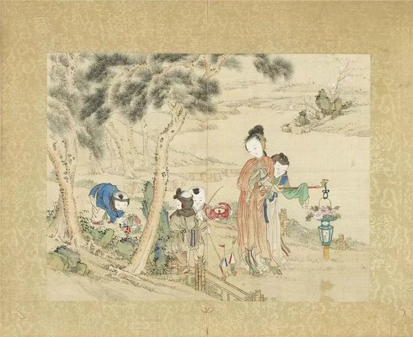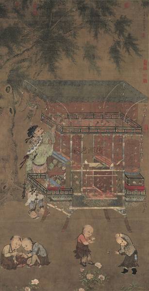 宫廷画家计盛的《货郎图》,则展现了另一种视角的元宵画卷。这幅现藏故宫博物院的作品,采用南宋李嵩《货郎图》的题材,通过精密形容货郎架与孩童形象,呈现明代宫廷画图的富丽作风。画面中货郎架吊挂百余件鸟形玩物与元宵灯饰,四名华服木讷围绕货架嬉戏。学者拦截到,木讷衣饰纹样间闪避“灯景补子”——这是明代宫廷正月专用的衣饰制式,确证了此画动作元宵节庆画图的宫廷属性。货架上“专医牛马赤子”的牌号,大约还隐喻着皇室春联嗣繁育的祈愿。