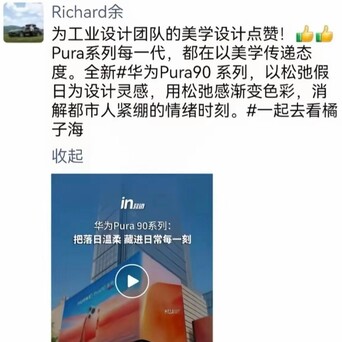 看来,华为Pura90 系列的“橘子海”渐变色野心是深得余承东情状了。