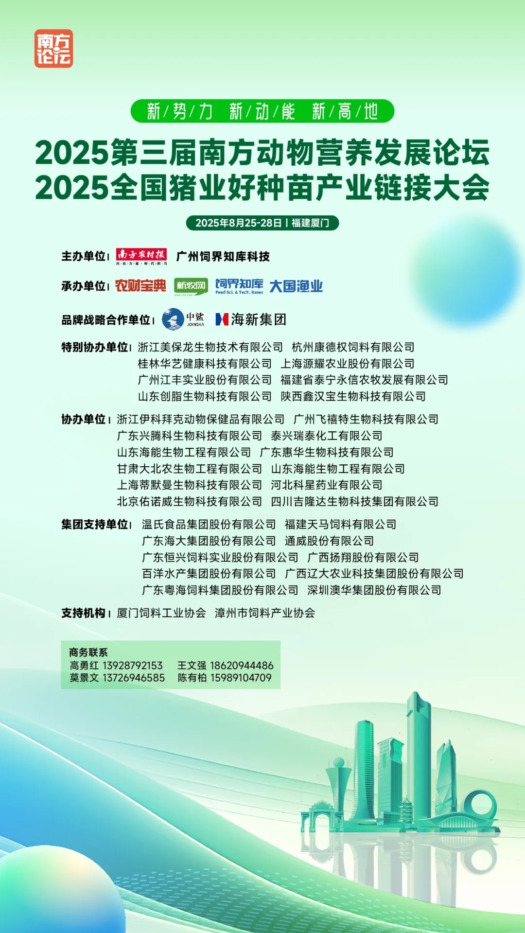 南边论坛由南边农村报、广州饲界知库科技摆布,农玉帛典·新牧网、饲界知库、大国渔业经办,超1000位畜牧种养、饲料养分领域顶尖大家、行业首领、企业代表、一线精英等将都聚一堂,奖赏领军企业、探讨破局之谈、为行业提供前瞻洞见与实践决议。智汇南边,赢领异日,诚邀行业同仁都聚厦门,共绘产业新蓝图!