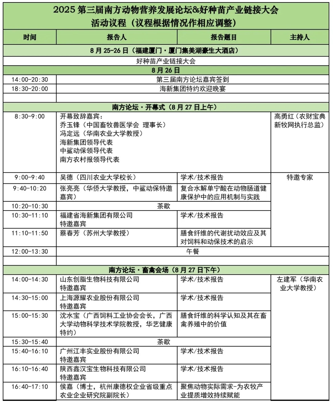 二、举止履行(一)时候场合:会议时候:2025年8月26-28日(26日报到,26日下昼闭门会,26-28日会议)会议场合:福建厦门 ·厦门集好意思湖豪生大栈房